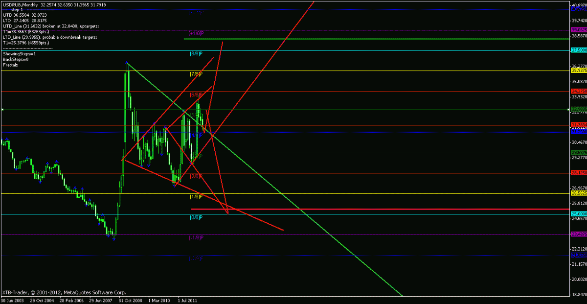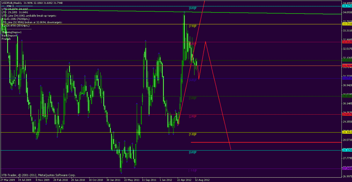 Гість фома Опубліковано 24 серпня, 2012 Опубліковано 24 серпня, 2012 (змінено) если до 12ч вылезим выше 2540 и закрепимся - верхи, нет - дальше летим 2480, 2370... если верхи: на счет верхов спорить не буду, 2670 - это максимум чего жду(граница дневного канала см. ниже), можем и на 2602 отскочить а на долгосрок - тут я слаб в принципе пора на коррекцию, а можем сделать 6 точку на вульфе дневном 2750 сейчас ...думаю все таки скорректируемся 2011.08.29 08:00 2012.05.01 00:00 2011.10.04 00:00 1.4548 1.3283 1.3145 смотрим рубль ну 31,25 сомнений не вызывает учитывая ближайшее направление нефти скорее всего рубль будет падать на 3281 где последует или разворот или коррекция недельный график также на распутье трендовая пробита- цель 28,12 (в принципе ожидаемо) но что на месячном! тест трендовой сверху! но и две волны Вульфа при чем чуть ли не на 25! попадалово в шахматах это называется пат Змінено 24 серпня, 2012 користувачем фома Цитата
