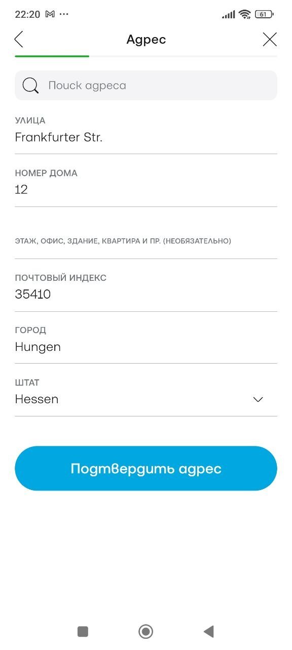Дальше потом адрес проживания любой немецкий реальный, некоторые там указывали адрес жд вокзала, это может не прокатить)