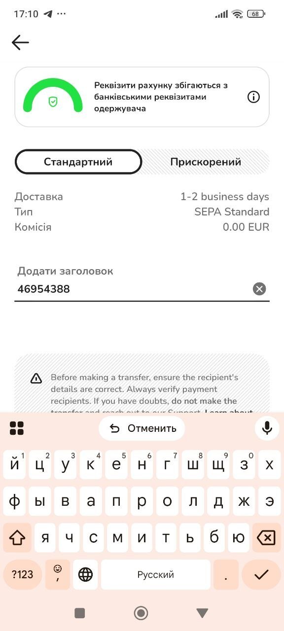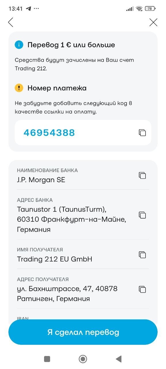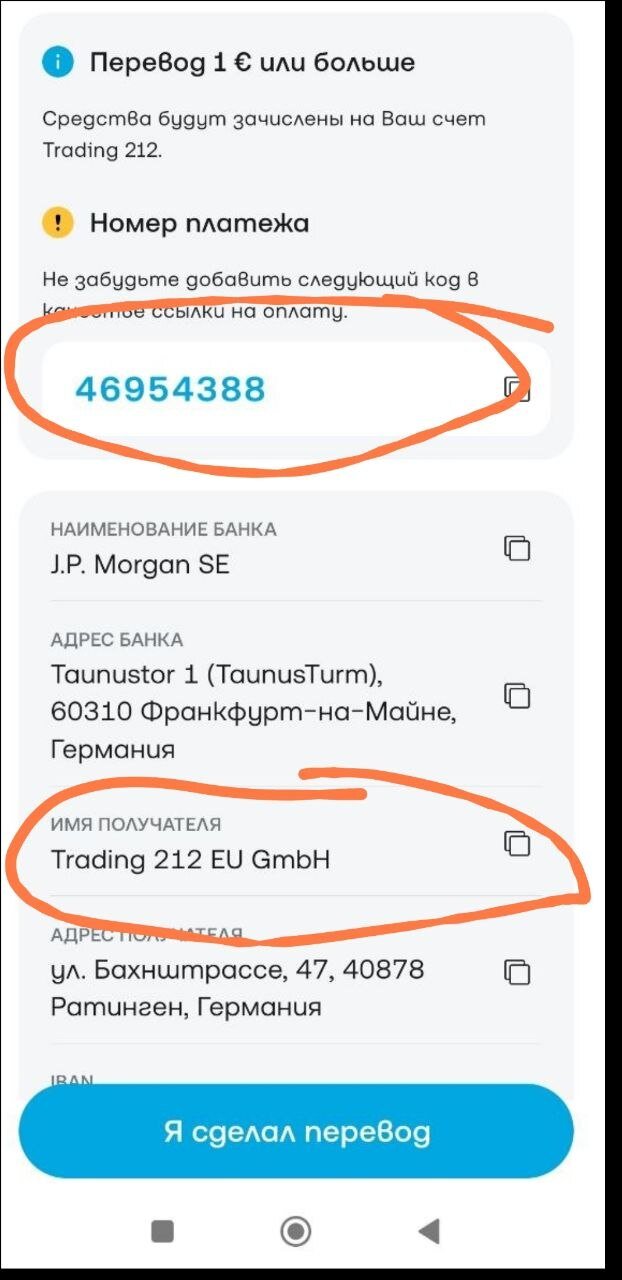 Надо пополнить с зен по этим реквизитам. Карту открывать не нужно! Ниже скринов накидаю, как перевести с зен на трэйдинг212. Если нужны подробности как пополнить зен, то пиши тоже помогу. Там или криптой или с евро карты любого банка. Жми на чудика справа внизу на фото и отправить, теперь через банк. Отсюда бери iban с трейдинг 212 И вводишь его на зен, Свифт он сам подтянет Потом выбираешь "компания" Это название компании и в примечании этот код Обязательно выбрать ускоренный! Если все норм через 10 минут евро придет и тебе сразу дадут акции на сумму от 10 до 100 евро.