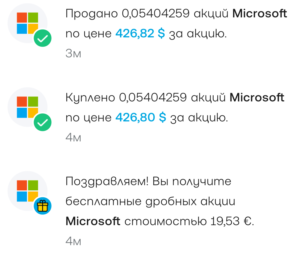 Смотри и акции пришли прям сейчас. Сколько дали?