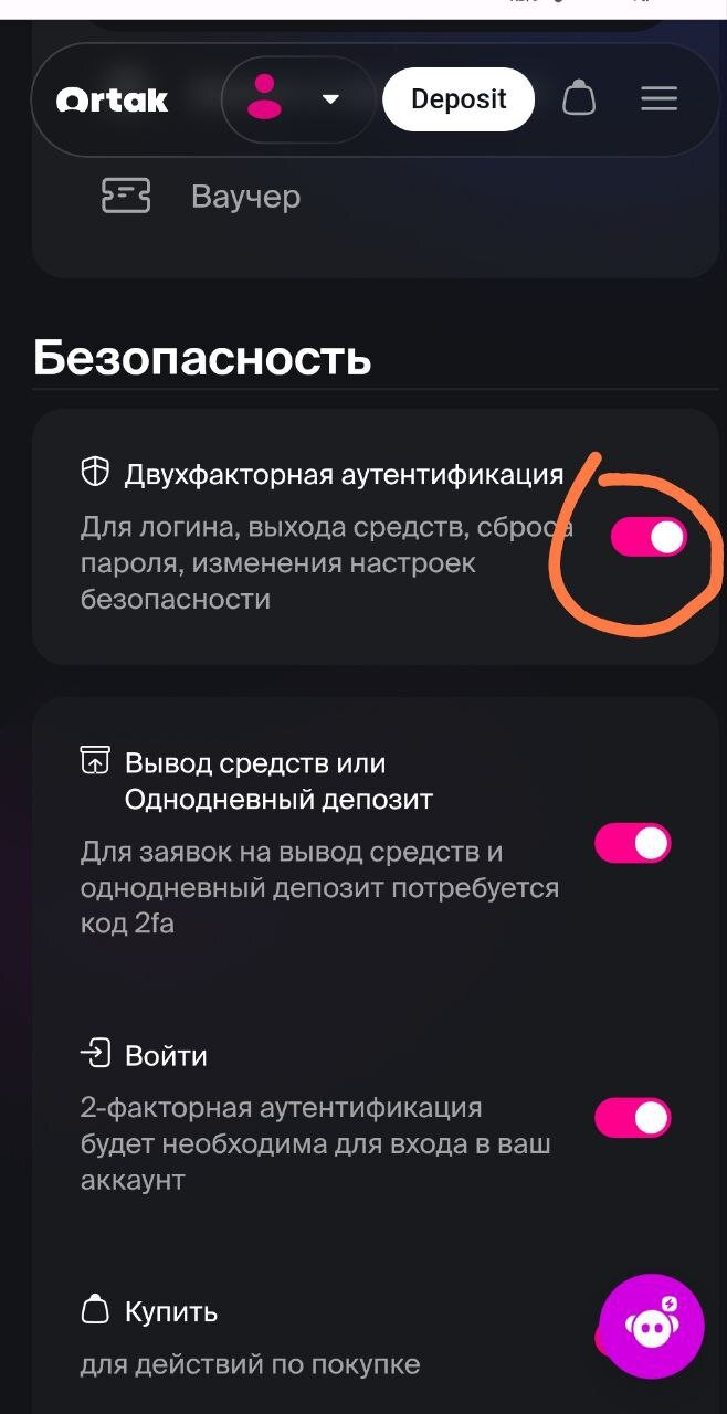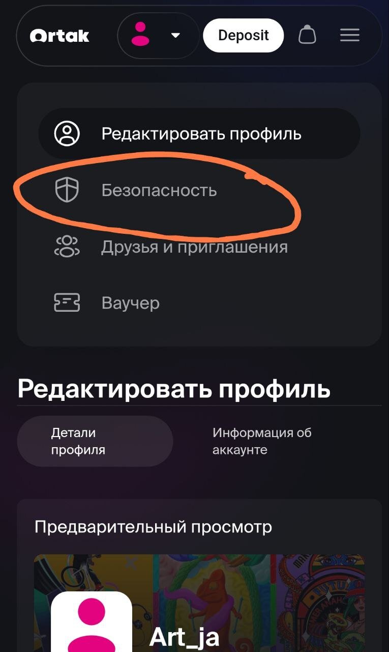 Вывод шагов. Расписал подробно, возможно новичкам будет казаться что это очень сложно, но это только первый раз, потом всё очень быстро и просто. 1. Сначала регистрируешься на сайте Ortak https://www.ortak.me?refId=328712 Регистрация через емейл Придумали себе НИК на английском! Записали его. Емейл и пароль Емейл подтверждаем на почту приходит код. 2. После регистрации идем Маркет/ортак, выбираем ваучер где 145к шагов (сегодня появился на 300к его ещё не пробовал) и нажимаем claim Далее вводим ваше имя при регистрации на ortak и жмем ордер. Всё вы вывели ваучер на биржу, он появится там в течении 5 минут. 3. Теперь ваучер нужно обменять на токен FTN. Возвращаемя на биржу https://www.ortak.me Нажимаем на человечка, потом мои NFT Там должен быть такой NFT и нам его нужно продать. Нажимаем на картинку эту и далее кнопку разместить для продажи Далее жмем offers и принять как на скрине, всё вы получили 0,975FTN, теперь их надо вывести на нормальную биржу и продать. Но вывод от 1 ftn, поэтому нужно ещё вывести 145к шагов и потом разом отправить всё. 4. Вывод FTN на биржу mexc. У кого нет этой биржи можно зарегистрироваться тоже по почте даже без документов. Ну это отдельная тема. Есть вывод и на другие биржи. Заходим опять в мои NFT и нажимаем вывод средств. Далее как на скрине ниже вводим сумму FTN (не меньше 1) и адрес получения на бирже mexc. Чтобы получить адрес идем на биржу mexc и далее как на скринах. Вывод идет в течении 10 минут, потом просто на бирже меняете токен FTN на usdt. Дополнительно чтобы вывести с ortak нужно подключить двухфакторную аутентификацию, как на скринах.