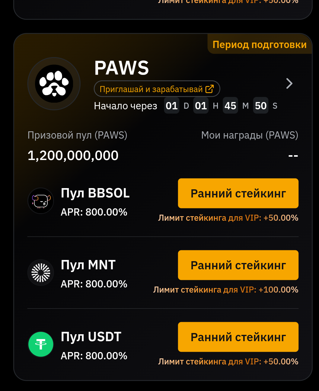 Ещё один пул на байбите, одновременно начнется с прошлым, но тут листинг будет через неделю paws. У меня кстати с тапалки их 5300 монет.