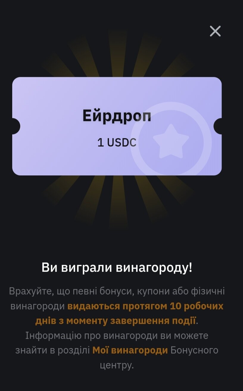 Окх, промка с Дубаи. Ищете эту промку в приложении, подключаетесь, оборот 3к в выбранных парах уйдет на фьючах на комсу 1.5$, приз в 90% случаев 2 тон или 6$, приходит сразу.
