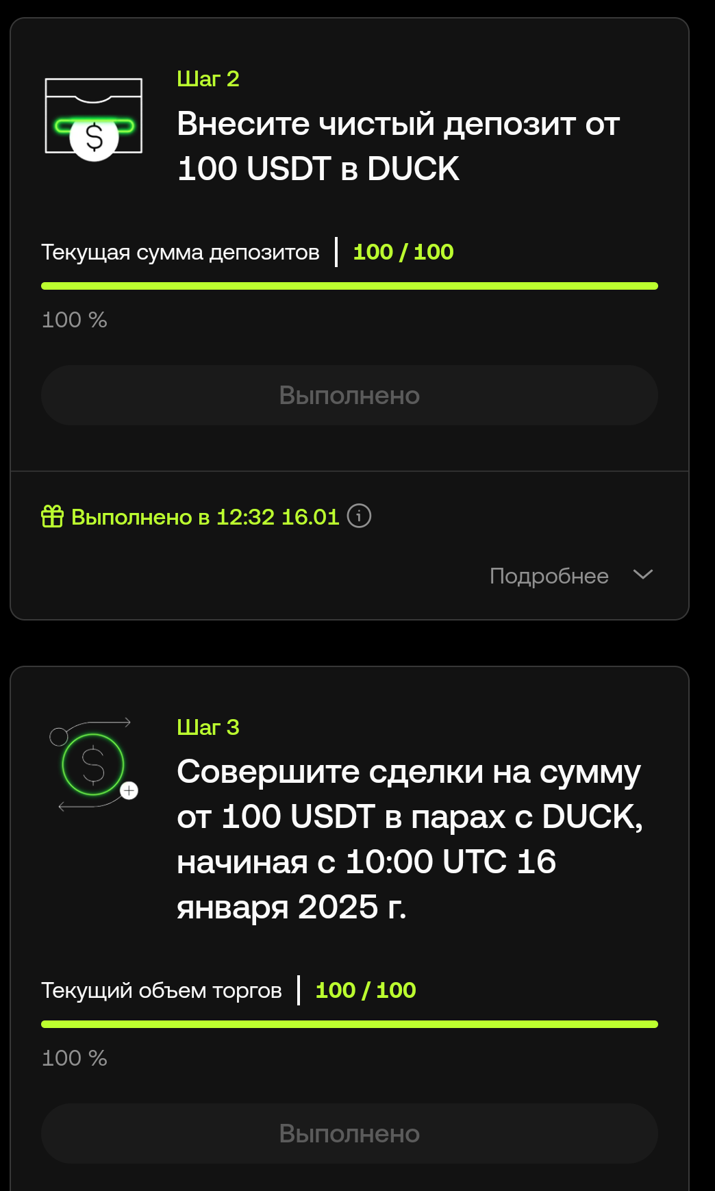 Новое промо на окх по уткам, аналогично bio, pengu и т.д. Новые 100usdt желания заводить не было, поэтому делал по такой схеме: вывел с ОКХ аптосом 101 на байбит за 0.03usdt. обязательно подождал 3-5 минут и только тогда подключился к акции, а потом назад с байбита завел с нулевой комсой, деп засчитало. Мест чуть меньше 17к, поэтому за пару часов выберут... Доход на моменте по промо маленький, но мы не знаем какой курс будет через 2 месяца на момент выплаты.. кому мало, можно не делать.