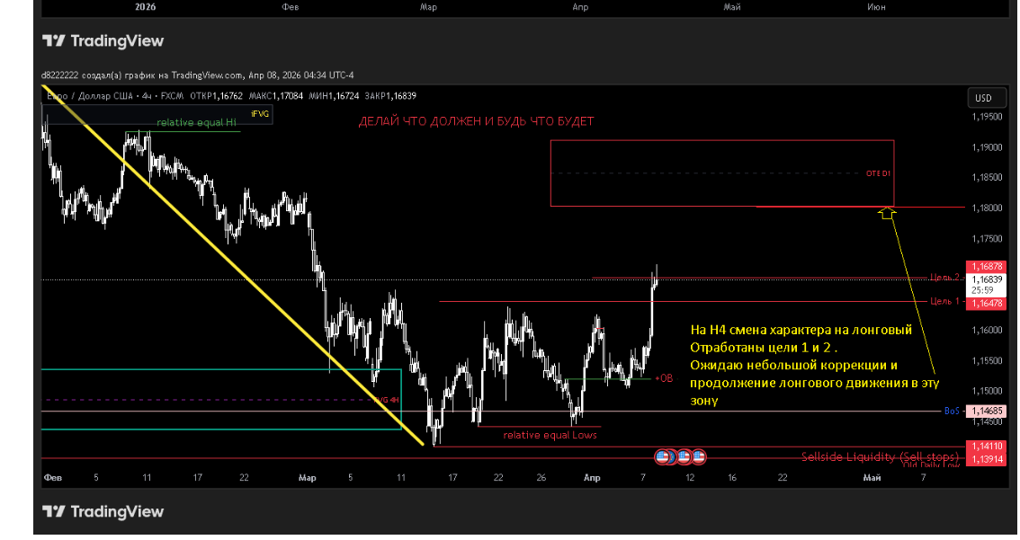 Благодарю за вопрос . Разворот цены в трейдинге — это момент, когда рынок меняет направление движения:BOS CHoCH был рост → начинается падение ТФ:D1.H4 я ничего не жду от рынка , у него свои цели, и никто не знает их наверняка, но… вероятность будущего события зависит от настоящего и прошлого и если очень внимательно наблюдать за рынком можно увидеть лес а не только одно дерево .(подтверждено многократно в моих постах) а сообщением выше предупредил что сейчас вероятность завершения коррекционного движения высока , но это не значит что 100% пойдем в какую-то сторону это значит что если кто то в лонгах на больших суммах то стоит быть внимательнее и на оборот кто хочет шортить…
