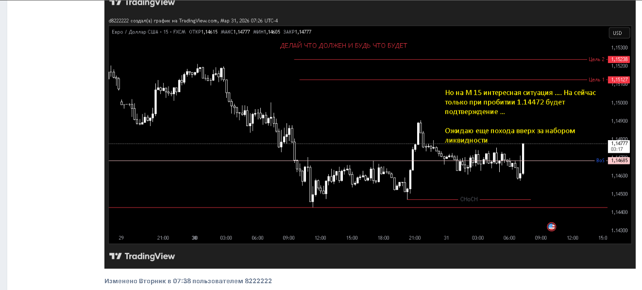 Благодарю за вопрос ! Ответ таков: график показывает на дату в 24 марта куда идет цена и какие у нее цели основанные на техническом анализе! Ведь согласитесь если цена управляется «в ручном режиме» то цель должна быть обязательна ?
