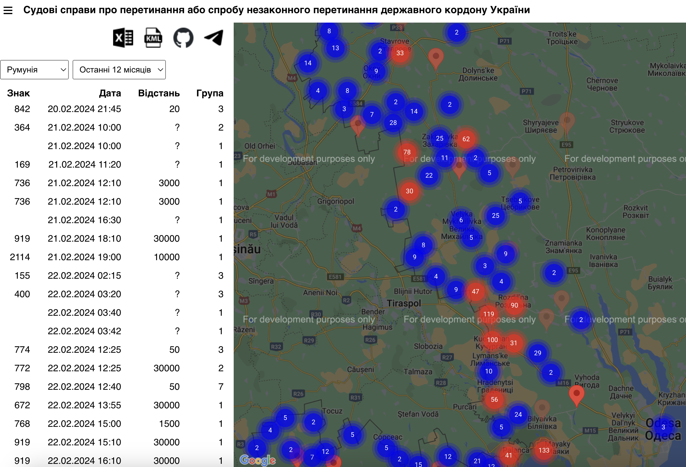 https://noescape.fyi/ інтерактивна карта на базі судового реєстру з десятками тисяч фактів захоплення цивільних на кордоні. усіх їх було позбавлено волі та відправлено до підвалів тцк. там є експорт у xls - можна подивитись десятки тисяч записів з посиланнями на судові засідання у розрізі останніх 3 років. ко йсе все влаштував? марсіанє на судових засіданнях сидять? чи хто?