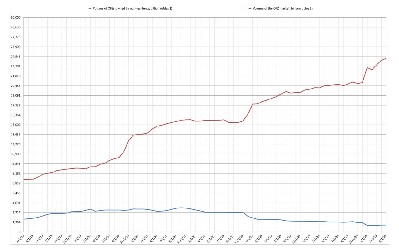 Як це на набирає. Ще й як зростає Общий объем ОФЗ в обороте и объем ОФЗ на балансе нерезидентов. Та й щодо перспектив російської економіки думки досить однозначні. Ось посилання, де я взяв дані про ОФЗ росіян в обороті https://t.me/istrebin/19951