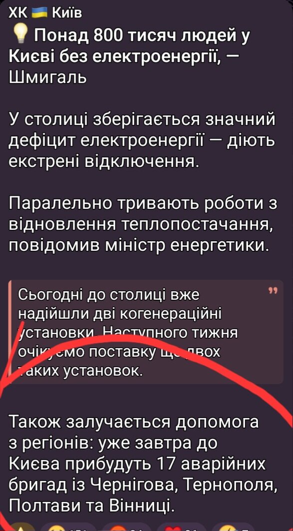 Я не вижу в Киеве это, а наоборот, попытки локального преодоления ситуации ЧС "по горячему ". При этом службы,занятые в ликвадации последствий страдают от несогласованных действий друг с другом. Тот кто им отдаёт распоряжения не понимает,что Киев,технологически, в ситуации блэкаута, и действия бригад в условиях зимы должны были быть совершено другими. Последствия - скорее всего,разрушение водных коммуникаций,функционал которых не возможен без ээ, которое можно и нужно было предотвращать, используя не магические, а вполне физические усилия по планированию экстренных мер.