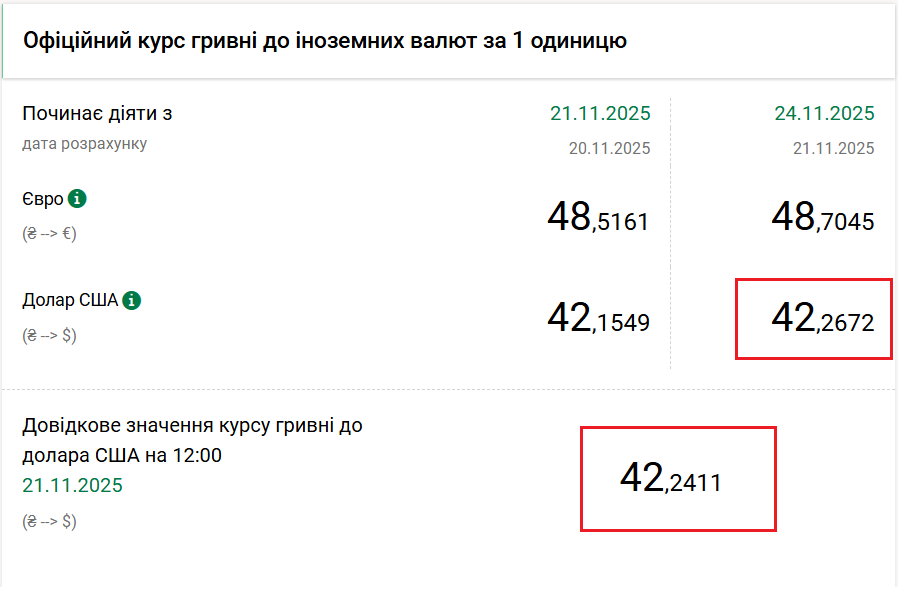 Заходимо ось сюди: https://bank.gov.ua/ua/markets Трохи прокручуємо сторінку донизу і дивимось ось сюди: Звісно, там не до копійки співпадіння, але принаймні орієнтир (вгору чи вниз) є.