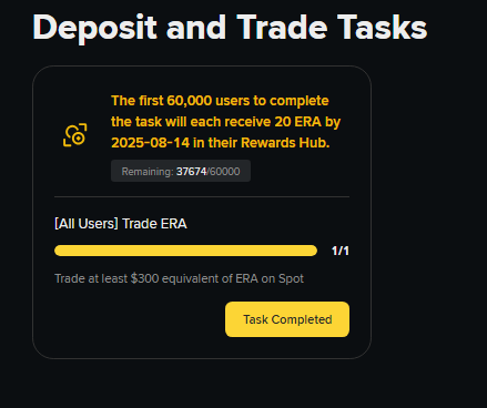 22. Акция на Binance: https://www.binance.com/en/activity/trading-competition/spot-era-listing-campaign Задание - купить-продать ERA на эквивалент 300USDT (оборот) Первым 60000 участникам начислят по 20ERA (15-30$, смотря, как курс будет). Делается за 1 минуту: Как видим, мест еще достаточно. Но не затягивайте.