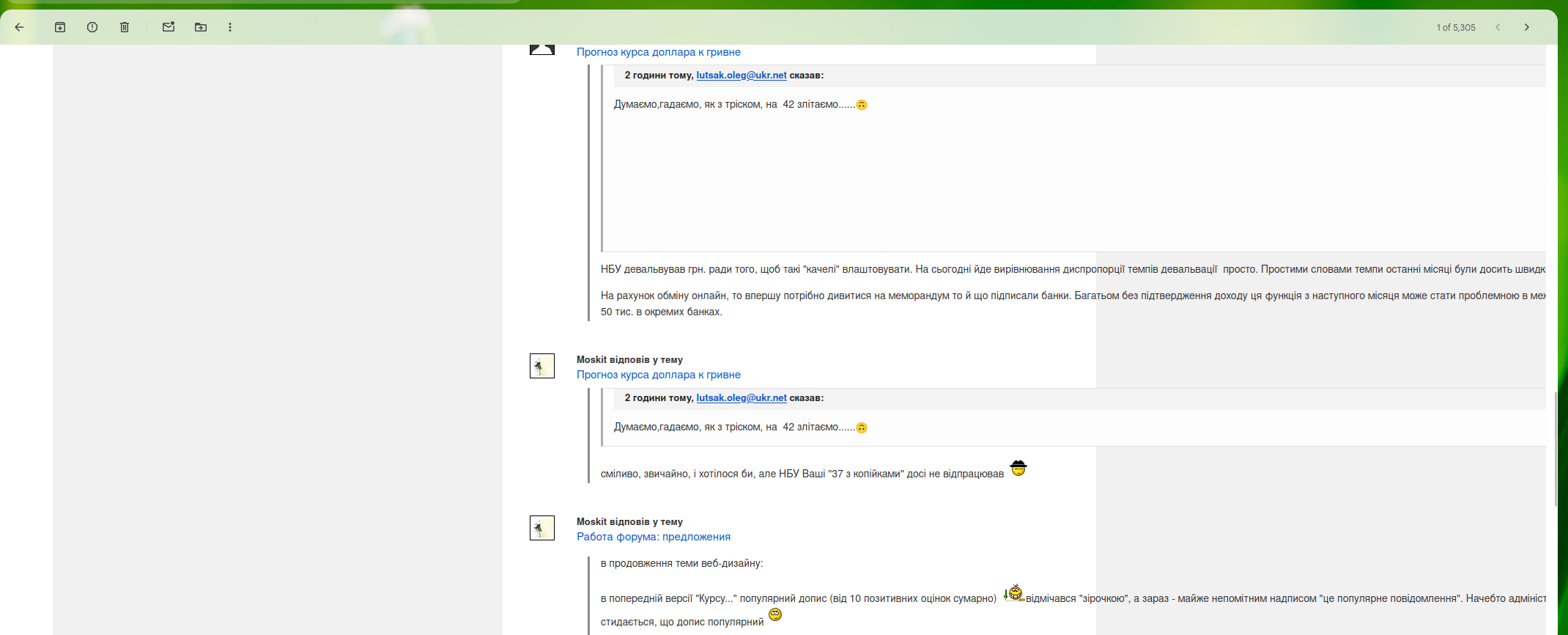 Віднедавна на пошту почали приходити страшні емейли від форуму - справа сильно побиті чи зміщені вправо + формтування злетіло, зліва купа пустого місця, приклад -