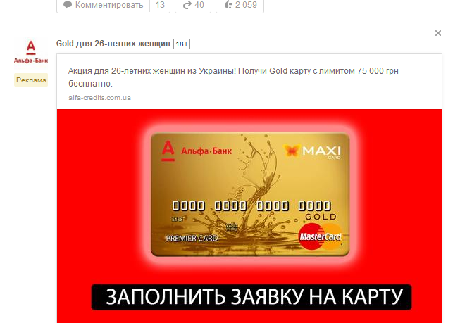 Альфабанк жжот. Реальная реклама в Одноклассниках. Ну да, от возраста именно размер лимита зависит...