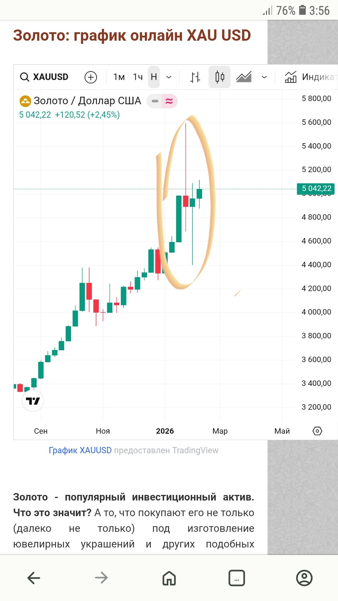 На неделях дали редкую как для золота фигуру молния( с дальнейшим подтверждением ) , значит золото , как антидолларовый актив будет расти и дальше Еще увидим 5600 (повторно) 6000 и возможно даже 7000 $ за унцию . Это все относится и к другим активам. Логику вы поняли ...