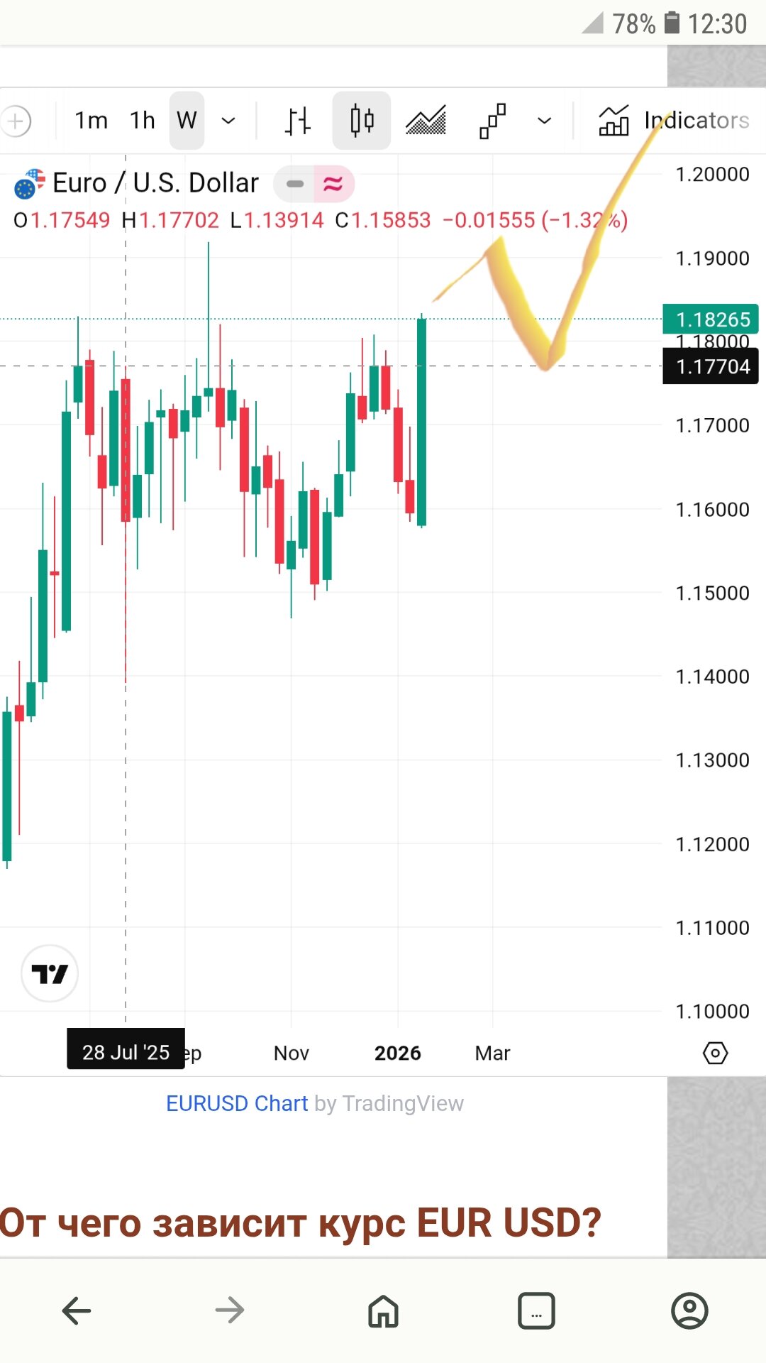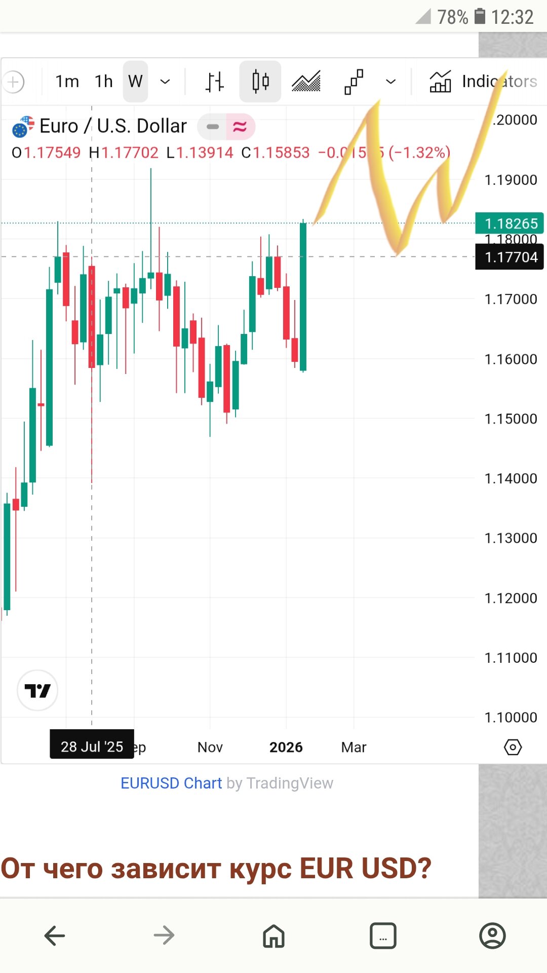 Цель восодящего движения - 1.183/1.191/1.2 Логика очень простая - нижнюю шпильку не пробили поэтому пробьют верхнюю . Насейчас идёт повторный тест зоны сопротивления ...