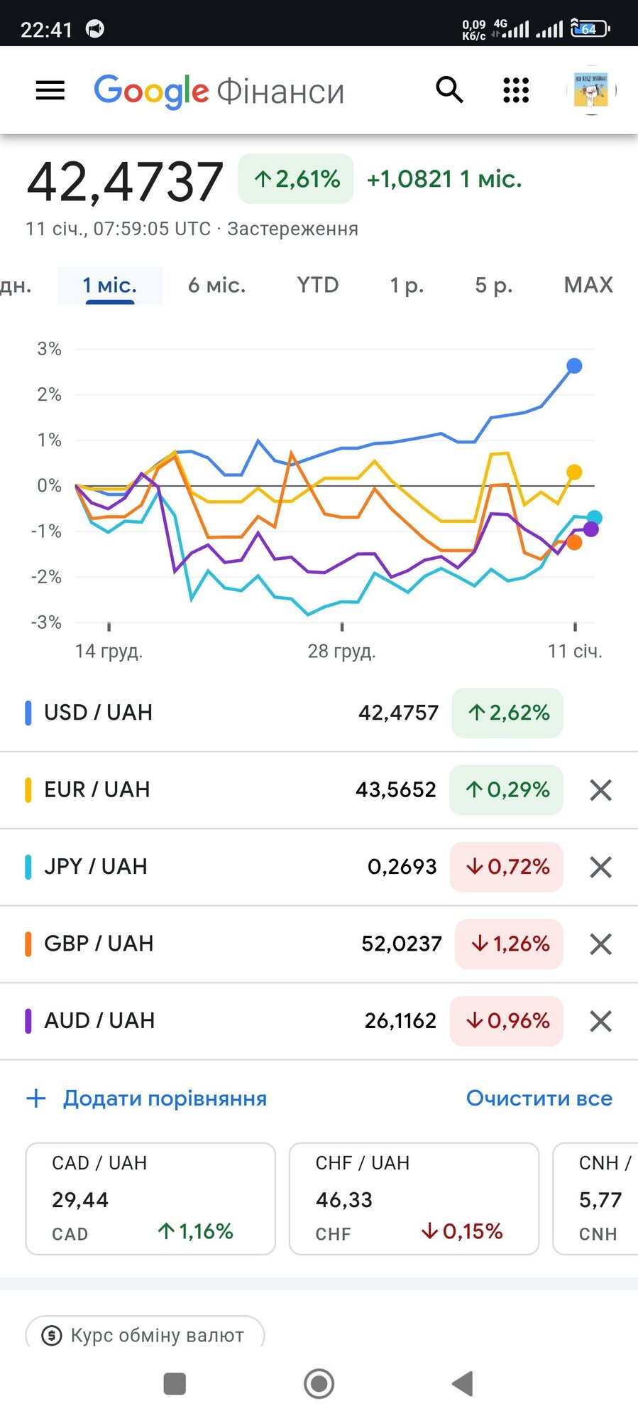 Зверніть увагу, що за місяць гривня девальвувала лише до долара, до інших, вільно конвертованих валют, гривня стабільна.
